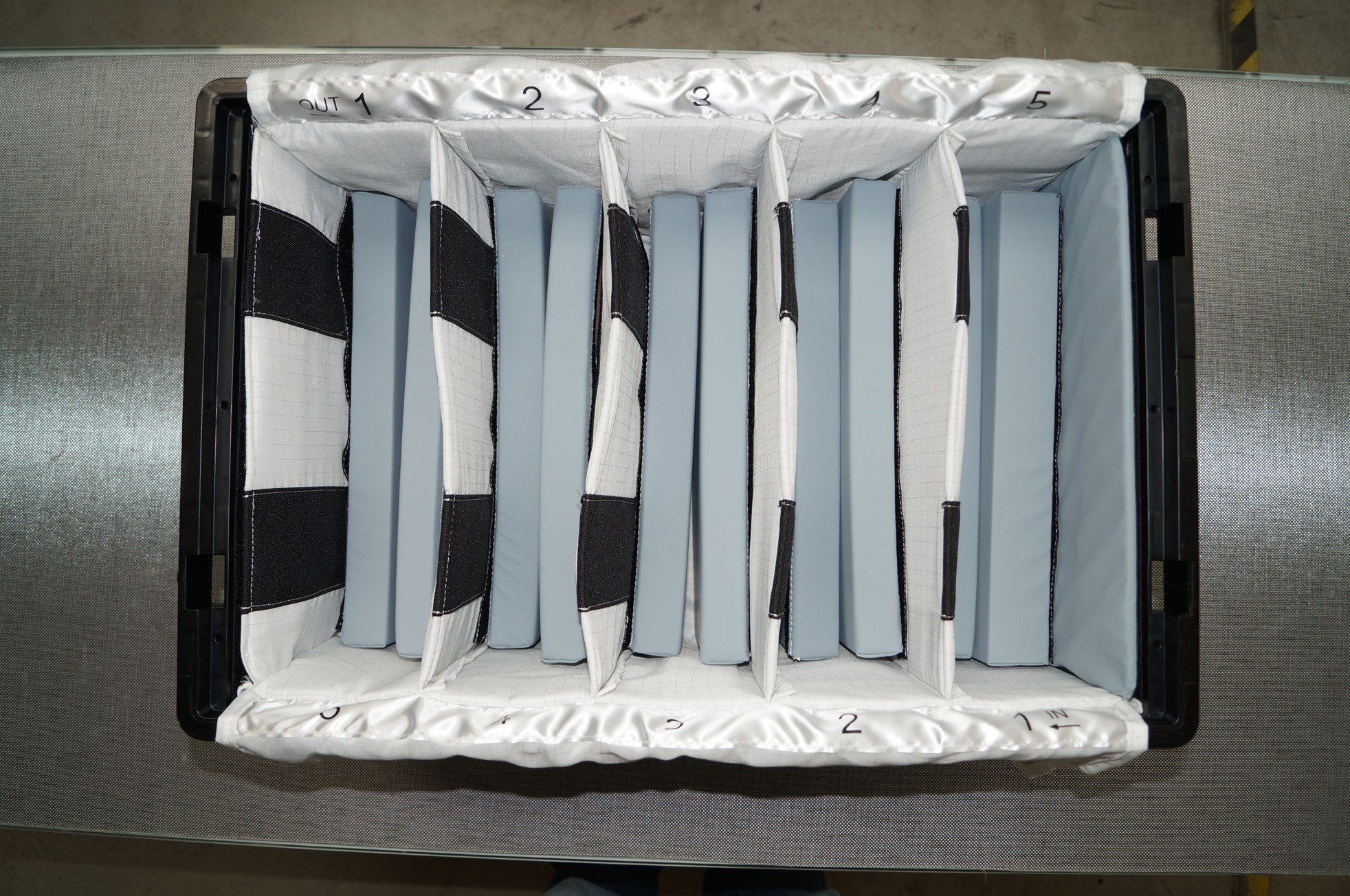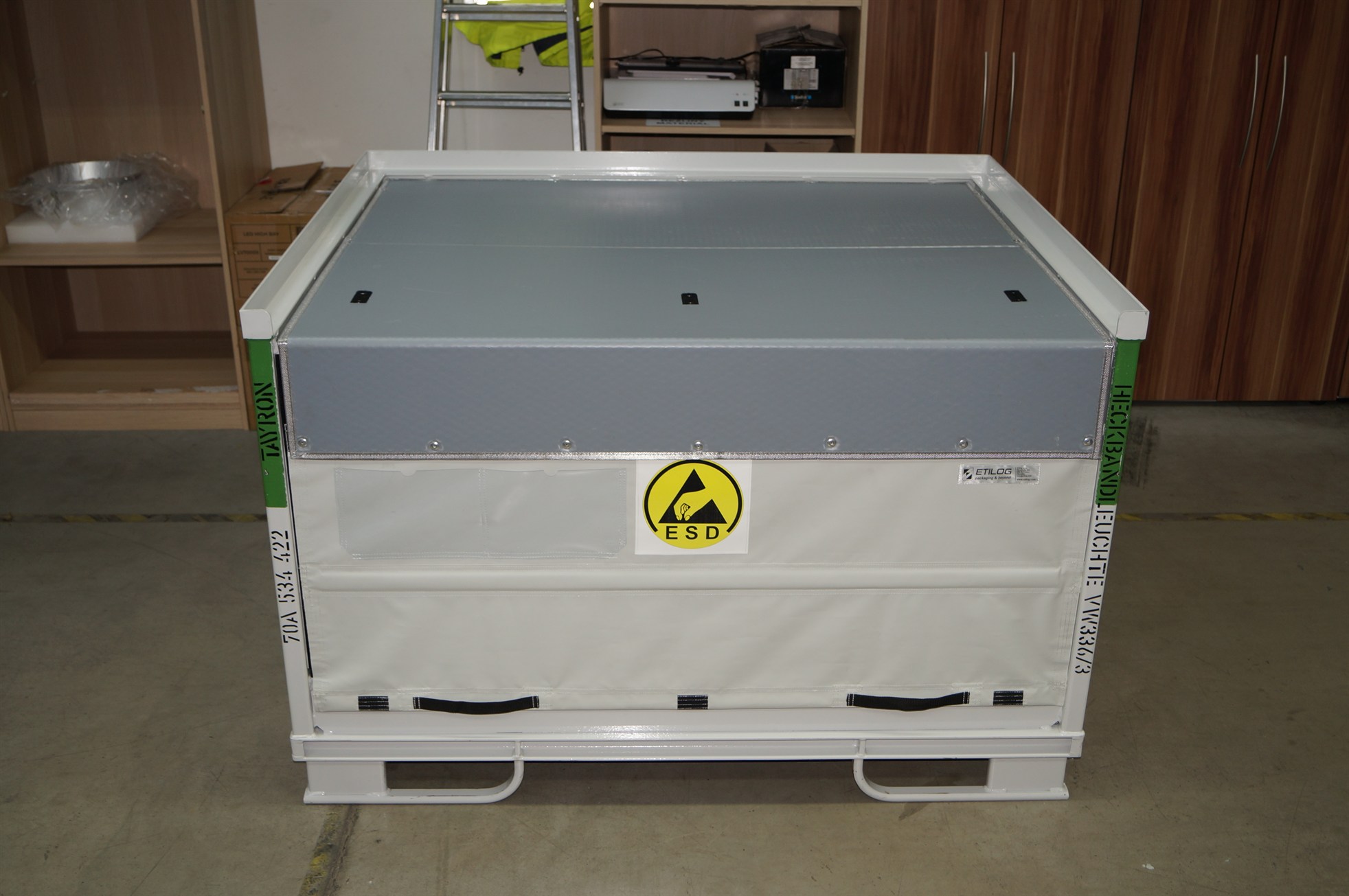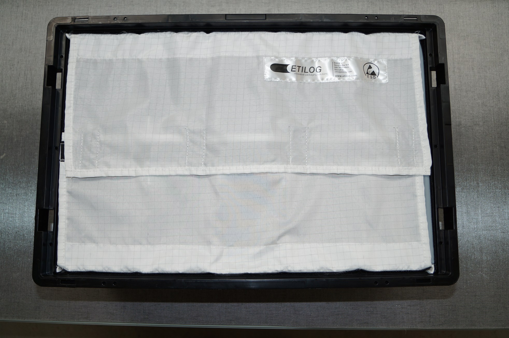 ESD-capable polyester fabric with a smooth surface and dust-free properties. Ideal for transporting components requiring ESD protection.