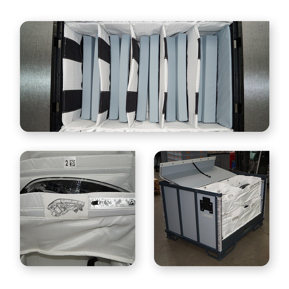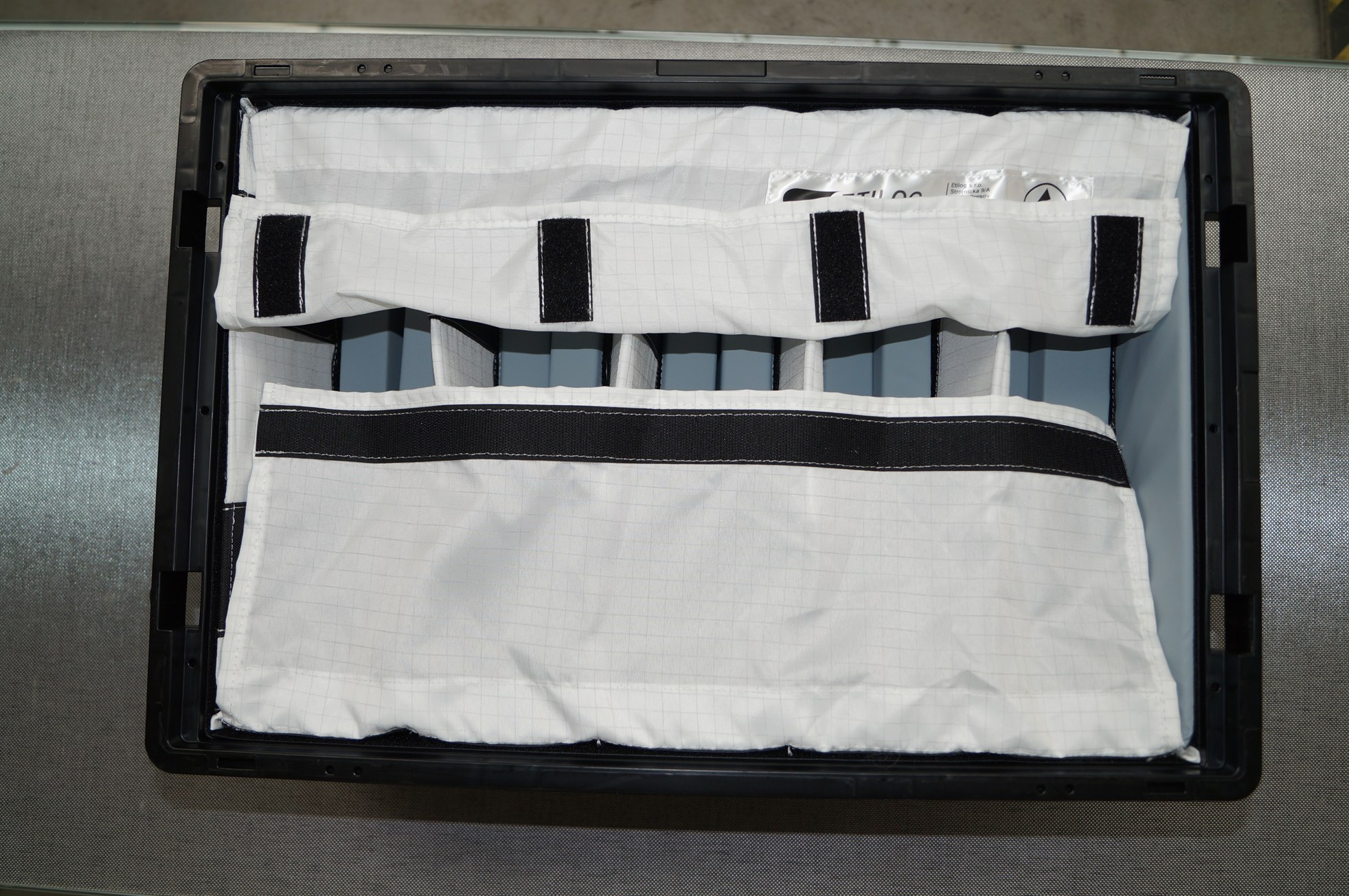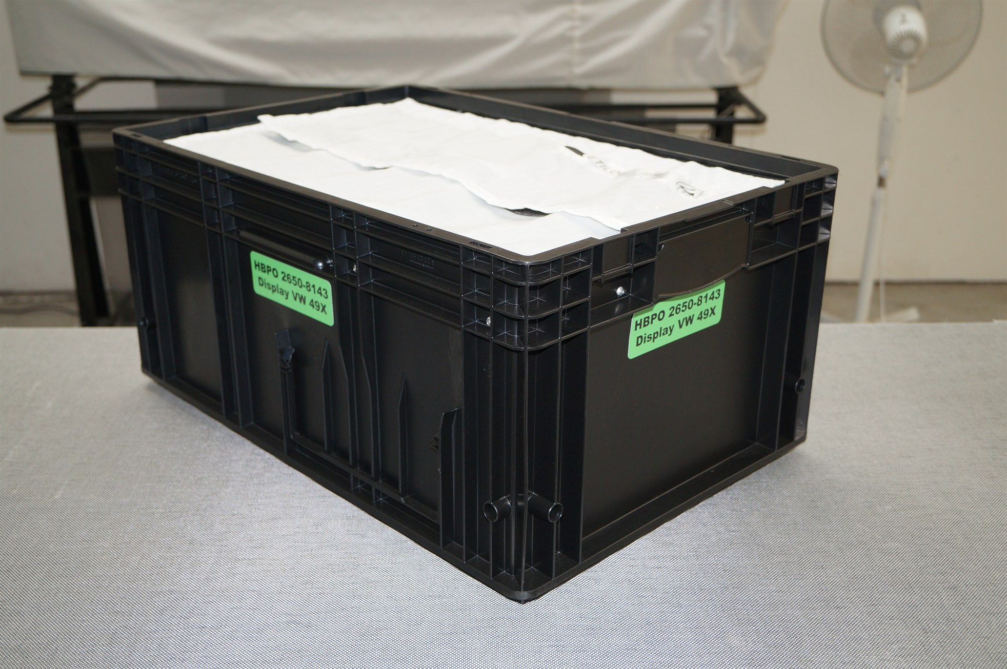 ESD-capable polyester fabric with a smooth surface and dust-free properties. Ideal for transporting components requiring ESD protection.