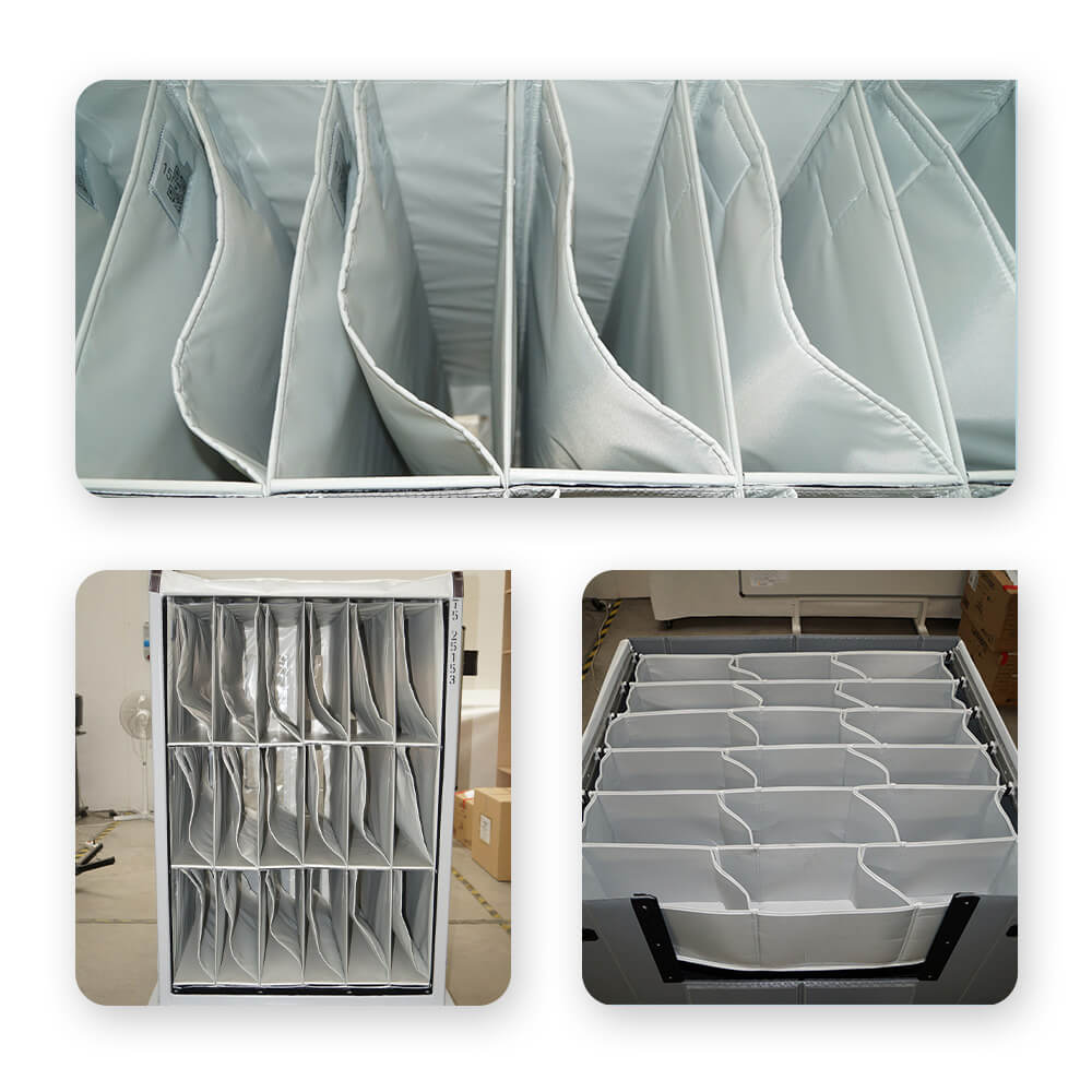 Ideal for highly sensitive surfaces, especially painted components. The laminated knitted side allows the placement of A-sides the laminated fabric side the placement of sharp edged B-surfaces such as clips.